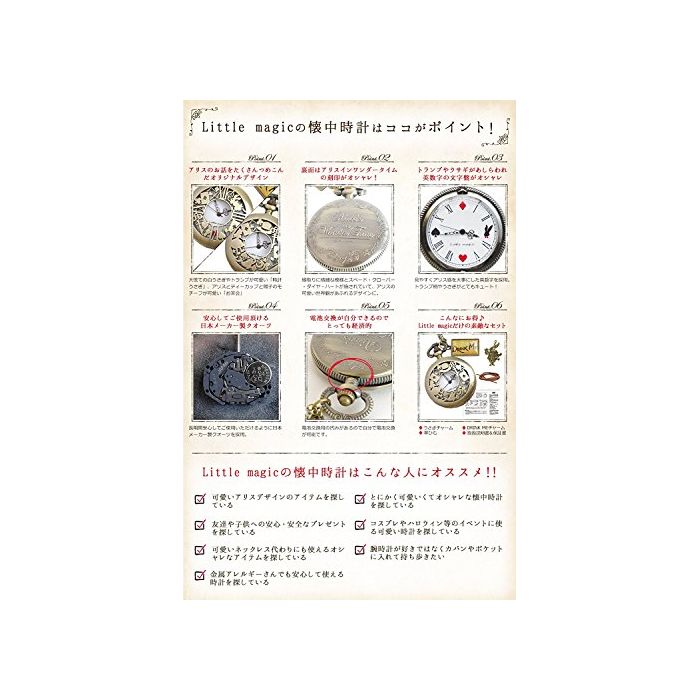 원본상품명:【リトルマジック】 日本メカ製クオツ 不思議ののアリス 中時計 レディス 【正規品】 ポケットウォッチ アンティク アリス ペンダント ナスウォッチ