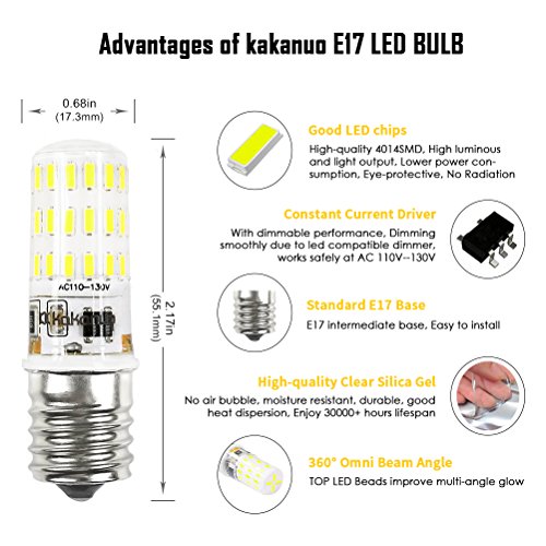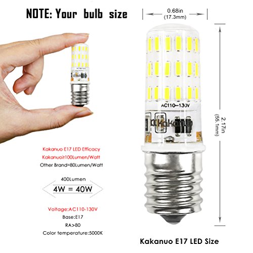 Kakanuo E17 LED Bulb Dimmable Microwave Oven Light 4 Watt Daylight White 5000K 43X4014SMD AC110-130V (Pack of 2)