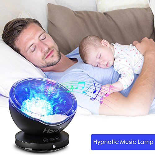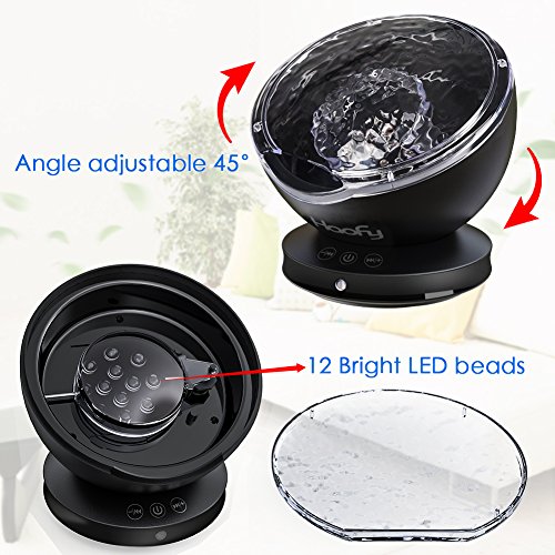 - Upgraded Ocean Wave Night Light:12 LEDs Light Projector with keys control,easily turn on/off the lamp,change lighting mode,and adjust the volume. Can be used as hypnotic music lamp and atmospheric projector,perfect for creating a watery ocean atmosphere!