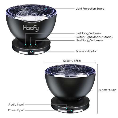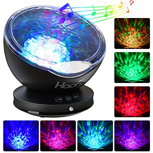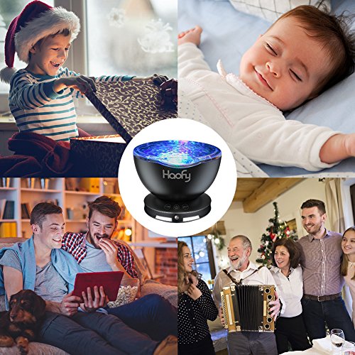 Ocean Wave Night Light,Haofy Ocean Wave Projector with Built-in Mini Music Player 7 Colors Night Lamp for Baby Kids Mommy Bedroom Living Room Party Dating (12 LEDs,Black)