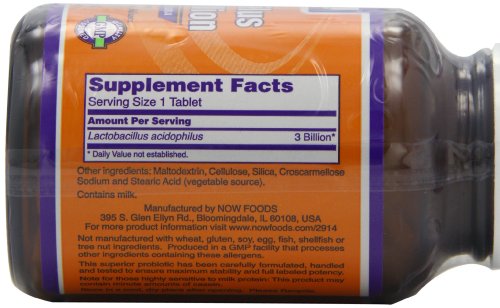 -. Binding : Health and Beauty -. Brand : Now Foods -. Label : Now Foods -. Manufacturer : Now Foods -. PackageQuantity : 1 -. ProductGroup : Grocery -. ProductTypeName : HEALTH_PERSONAL_CARE -. Publisher : Now Foods -. Studio : Now Foods -. Title : Now Foods, Stabilized Acidophilus Three Billion