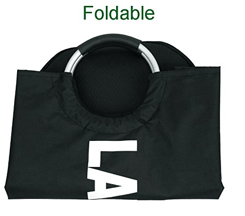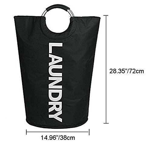 - DURABLE MATERIAL: 600D Oxford fabric, the bottom of laundry basket with thick PE board for stability. Aluminum alloy ring handle with rubber form grip.
