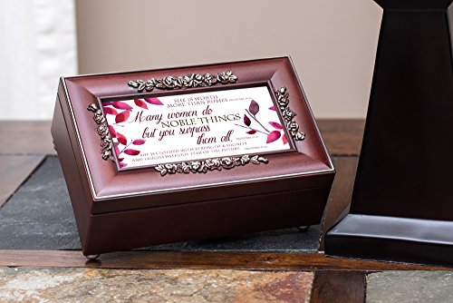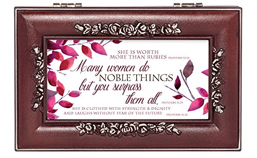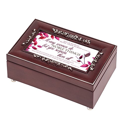 Proverbs 31 Woman Leaves Rose Wood Finish Jewelry Music Box Plays Canon in D