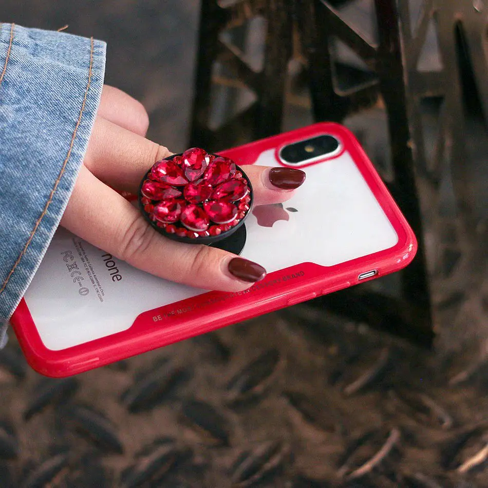 Feature 3:3D Rhinestone Grip Stand Holder Hard Clear Back Phone Case
