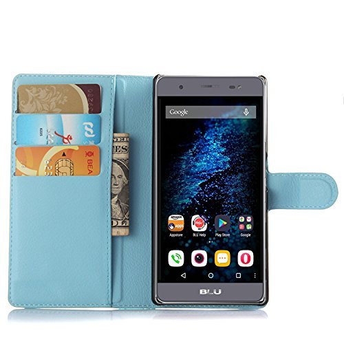 BLU Energy X Plus case, KuGi ® High quality MX stle PU cover + TPU back wallet Case for BLU Energy X Plus 5.5 inch smartphone. (For BLU Energy X Plus, Blue)