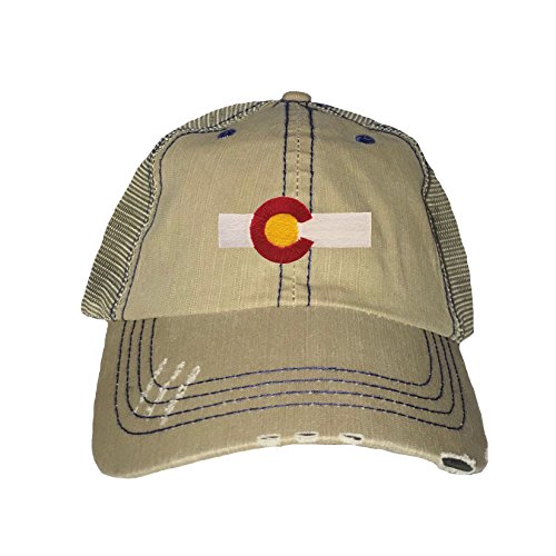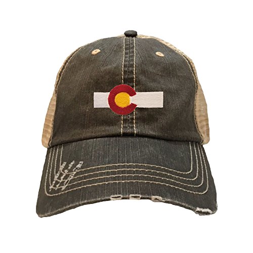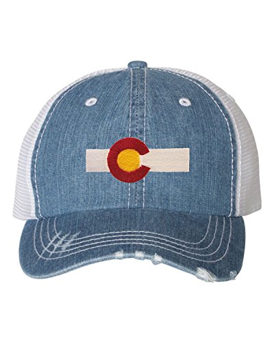 | (Go All Out Screenprinting)/Accessories/Hats/DIRECT FROM USA/Go All Out Screenprinting Adult Colorado Flag Embroidered Distressed Trucker Cap |