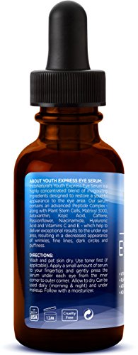-. Binding : Health and Beauty -. Brand : InstaNatural -. EAN : 0616913954745 -. Feature : Powerhouse Formula - With a combination of Vitamin C, Plant Stem Cells, Astaxanthin, Kojic Acid, Caffeine, Hyaluronic Acid and more, InstaNatural's Eye Serum is uniquely formulated with innovative key ingredients to help reduce bags, wrinkles, fine lines, sagging skin and more. / Reduces Wrinkles & Fine Lines - Other ingredients in the blend - such as Vitamin C, Plant Stem Cells, and Astaxanthin - serve to strengthen skin and reverse existing damage, while Hyaluronic Acid locks in moisture to help plump up skin and diminish the appearance of wrinkles and fine lines. / Diminishes Dark Circles & Puffiness - Caffeine provides a stimulating constricting effect that helps to reduce puffy, tired-looking eyes. Meanwhile, Niacinamide and Kojic Acid work to prevent pigmentation from forming to lighten and fade away those stubborn dark circles. / Lightweight Yet Effective - InstaNatural's Youth Express Eye Serum is lightweight so it absorbs easily into the skin to quickly deliver antioxidant benefits, and it can be used under makeup as well. Each bottle contains no harmful parabens, sulfates or alcohol. / Manufacturer Guarantee - InstaNatural is proud to back their products with a 100% Satisfaction Guarantee Policy, no matter where you buy the products. If you are not completely happy with your purchase, please contact InstaNatural for a refund - no questions asked. -. Label : SETAF -. Manufacturer : SETAF -. Model : 0010 -. MPN : INS0616913954745790 -. NumberOfItems : 1 -. PackageQuantity : 1 -. PartNumber : INS0616913954745790 -. ProductGroup : Beauty -. ProductTypeName : BEAUTY -. PublicationDate : 2015-02-04 -. Publisher : SETAF -. ReleaseDate : 2015-03-12 -. Studio : SETAF -. Title : Eye Serum for Dark Circles & Puffiness - Reduces Bags, Wrinkles, Fine Lines, Sagging Skin & Puffy Eyes - With Vitamin C, Caffeine, Plant Stem Cells, Astaxanthin & Kojic Acid - InstaNatural - 1 OZ -. UPC : 616913954745