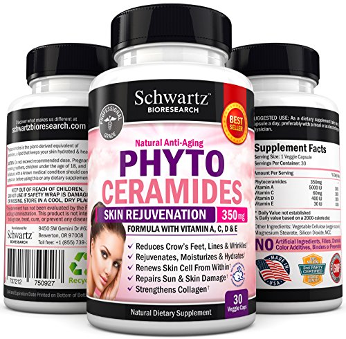 -. Binding : Health and Beauty -. Brand : Schwartz Bioresearch -. EAN : 0737212750972 -. Feature : Best Phytoceramides 350mg plant derived on the market / The perfect anti-aging skin care for skin rejuvenation / Schwartz Bioresearch phytoceramides are gluten free / Excellent option for hair skin and nails vitamins / Made in USA - Money Back Guarantee -. IsAdultProduct : 0 -. Label : Schwartz Bioresearch -. LegalDisclaimer : These statements have not been evaluated by the Food and Drug Administration. This product is not intended to diagnose, treat, or cure any disease. -. Manufacturer : Schwartz Bioresearch -. PackageQuantity : 1 -. ProductGroup : Health and Beauty -. ProductTypeName : HEALTH_PERSONAL_CARE -. Publisher : Schwartz Bioresearch -. Size : 30 Count -. Studio : Schwartz Bioresearch -. Title : Phytoceramides 350 mg plant derived for skin rejuvenation formulated by Doctors and gluten free. Best hair skin and nails vitamins. Made in the USA. Money Back Guarantee -. UPC : 737212750972
