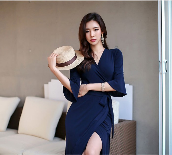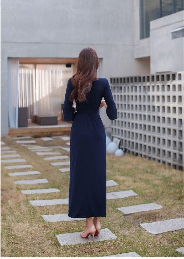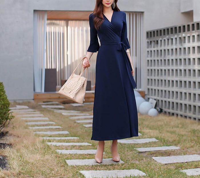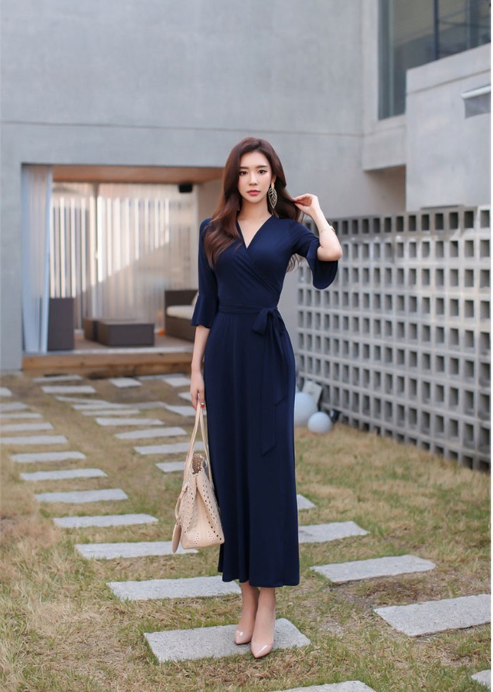商品名:カシュクールワンピース ワンピース レディース マキシ丈 無地 ロング丈 7分袖 30代 40代 ファッション 2017 春夏 新作 ワンピ