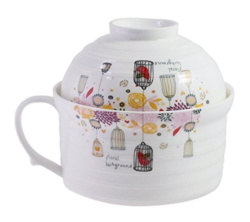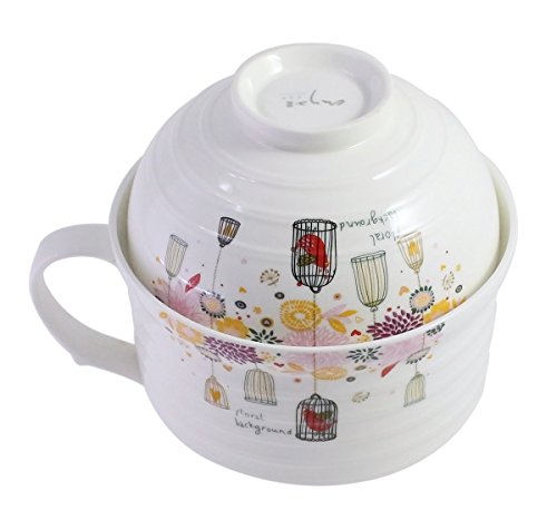 JustNile Imported Double Porcelain Instant Noodle Bowl Tea Coffee Milk Cup Mug with Handle