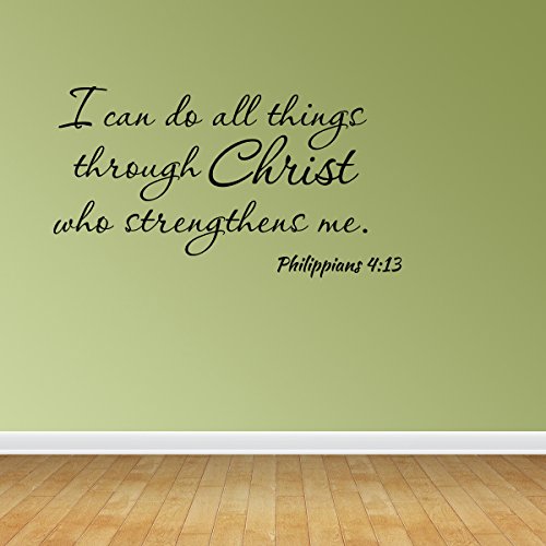 -. Binding : Kitchen -. Brand : WallDecalQuote -. Color : Black -. EAN : 0799559086459 -. Feature : ★ MADE IN THE USA - From 7 years indoor/outdoors self-adhesive Vinyl Material. / ★ DECAL IS MADE WITH HIGH QUALITY ORACAL 651 VINYL MATERIAL / ★ EASY TO APPLY: Sticker can be applied to any hard and smooth surface. Once the decal is on the wall the only thing left are the letters. ★ IT IS EASY TO REMOVE: No residue is left on the wall (note: decal is REMOVABLE but not REUSABLE). / ★ DECAL SIZE: 28" Wide x 13" High inches (71 cm Wide x 33 cm High). ★ DECAL COLOR: BLACK. / ★ EASY TO HANDLE: The whole quote comes on one single piece, which sticks to the wall. -. IsAutographed : 0 -. MPN : 14168610 -. PackageQuantity : 1 -. PartNumber : 14168610 -. ProductGroup : Home -. ProductTypeName : HOME -. Size : 28"W x 13"H -. Title : Wall Decal I Can Do All Things Through Christ Who Strengthens Me Philippians 4:13 Bible Verse Quote -. UPC : 799559086459