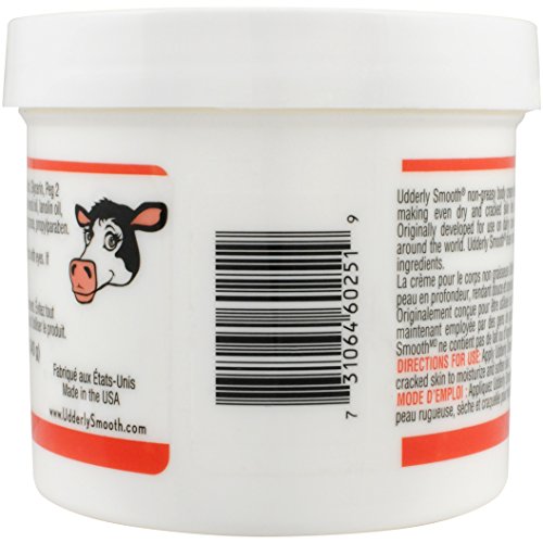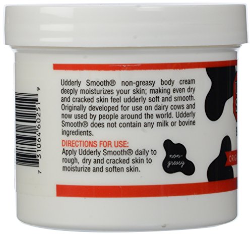 -. Binding : Misc. -. Brand : Udderly Smooth -. Feature : Contains parabens and a rich blend of moisturizers that help smooth roughness and condition the skin / Light fresh fragrance, never greasy / Long Lasting 12-Ounce Jar / For normal skin, daily use / Original formula, made in USA -. Label : Udderly Smooth -. Manufacturer : Udderly Smooth -. MPN : UDD00003 -. PartNumber : UDD00003 -. ProductGroup : Beauty -. ProductTypeName : BEAUTY -. Publisher : Udderly Smooth -. Studio : Udderly Smooth -. Title : Udderly Smooth Body Cream Skin Moisturizer, 12-Ounce Jar