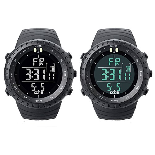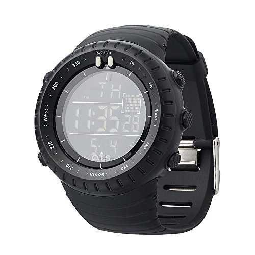 Note:The compass is designed for the decoration,it is fixed and it can't rotate. Features: Multi-functions Chronograph(you can start or stop whenever you want) Clander(display the date and the week) Waterproof(50m underwater) Alarm(ring at the time you set) Light(light up for about 3 secs) Big dial Dial diameter is 50mm,it fits customers who love watches with big dial. Comfortable wearing 0