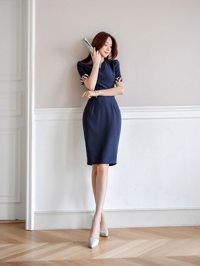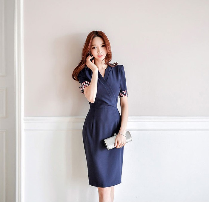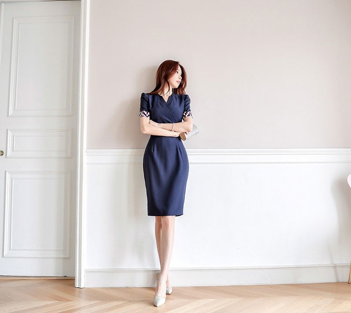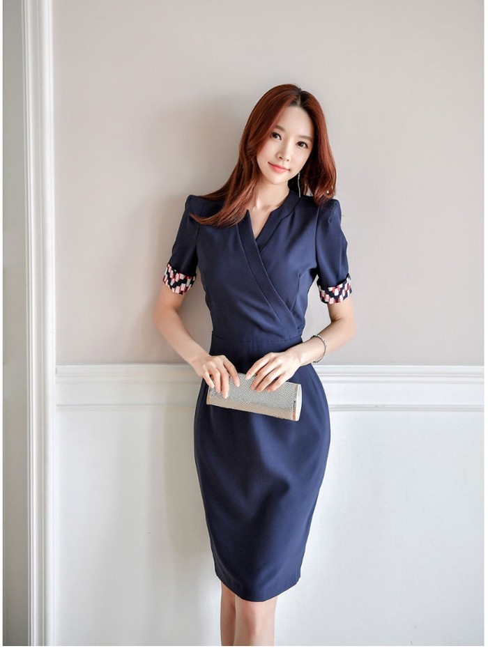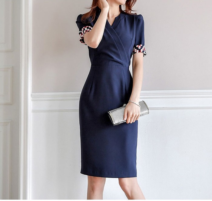 商品名:ワンピース カシュクールワンピ 半袖 膝丈 きれいめ