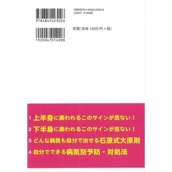 【商品説明】 定価(税込み):1,512円 値引き:10% OFF 目次:1章 上半身にあらわれるこのサインが危ない!2章 下半身にあらわれるこのサインが危ない!3章 病気を自分で治す「石原式大原則」4章 自分でできる病気別予防・対処法 バーゲンブック 新品 特価 格安 |
