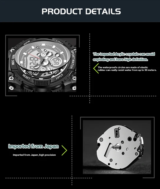 | [해외] Led 디지털 군사 레저 시계 스포츠 자동 방수 시계 남성 패션 시계 최고 품질 시계 육군 손목 군사 |