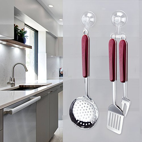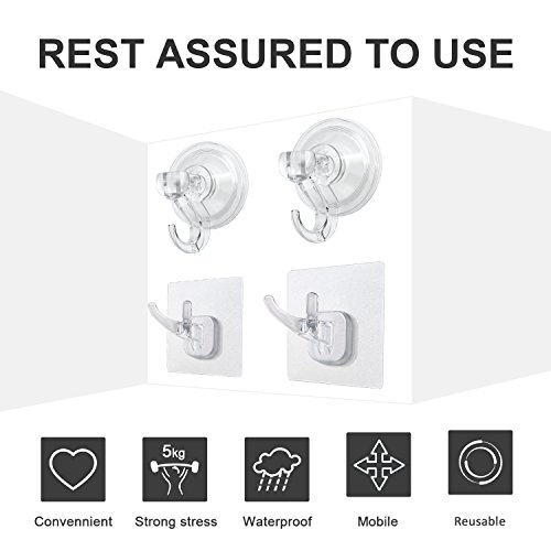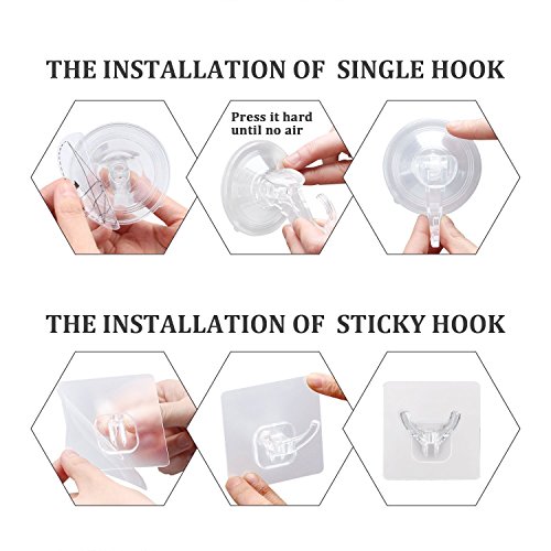 - 【Waterproof and Oilproof】Both bathroom and bedroom, as well as kitchen, you can use hooks on the glass, tile and other smooth surface to make your things neat. Very practical in the daily use.