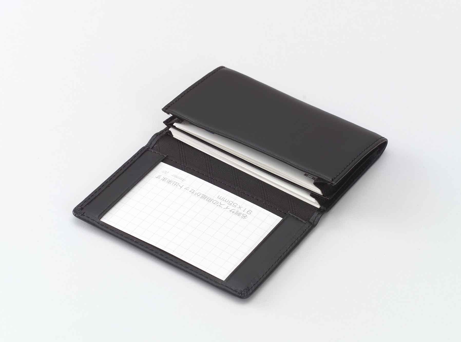 It is a two layer type pocket convenient for business card arrangement.