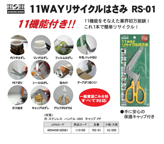 11機能をそなえた業界初万能鋏!これ1本で簡単リサイクル!