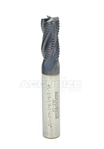 AccusizeTools - 3/8x3/8x3/4x2-1/2" Fine Tooth M42 8% Cobalt TiAlN Roughing End Mill, #1104-0038