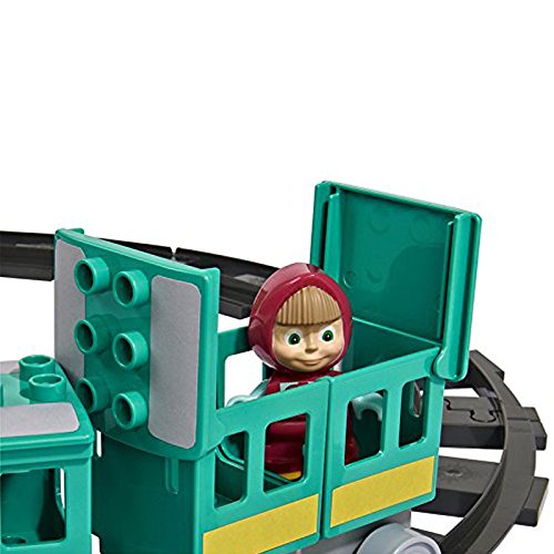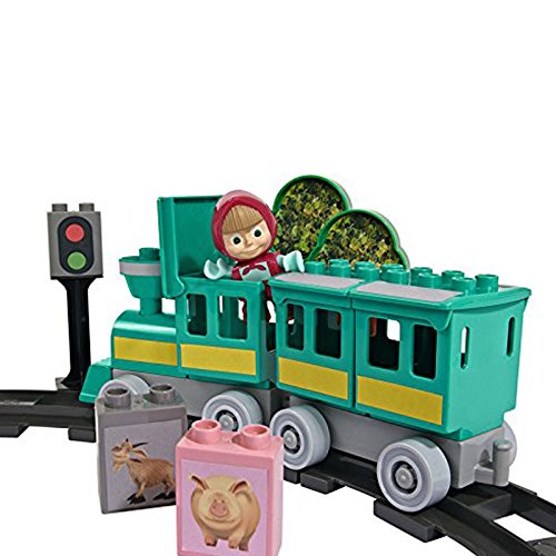 Masha is ready for a new adventure in her cute train. The train can be opened to place the figures inside and travels on tracks to go past traffic lights, a road crossing and a tree. Box includes 32 Duplo compatible pieces Box size: 35 x 23 x 9 cm (13.7 x 9 x 3.5 "). Official product with license.