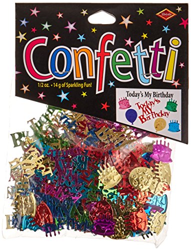 Studio : The Beistle Company Publisher : The Beistle Company Binding : Kitchen Product Description Beistle CN063 Today's My Birthday Confetti. This is a multicolored confetti that has a mix of balloons, cakes and the words "Today's My Birthday". There is a half ounce in the package. This is a very nice confetti to scatter on tables for birthday parties. 0