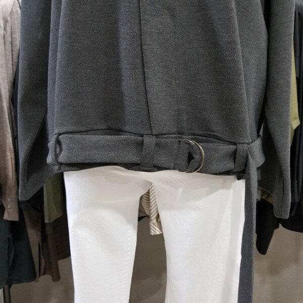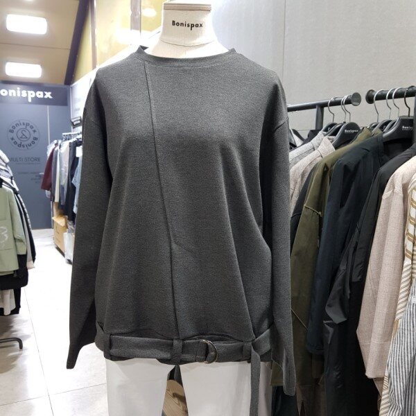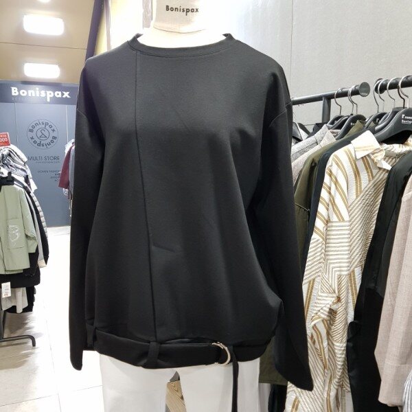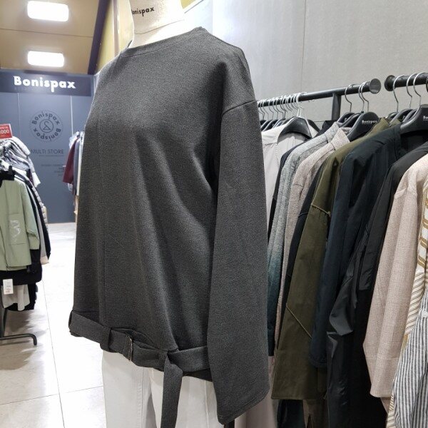 기본라운드티 형식의 여유있는 핏에 밑단부분 벨트로 포인트를 살린티셔츠^^FREE 사이즈로 송새,어깨부분 품여유있습니다.바지,스커트등 다양하게 코디가능~~