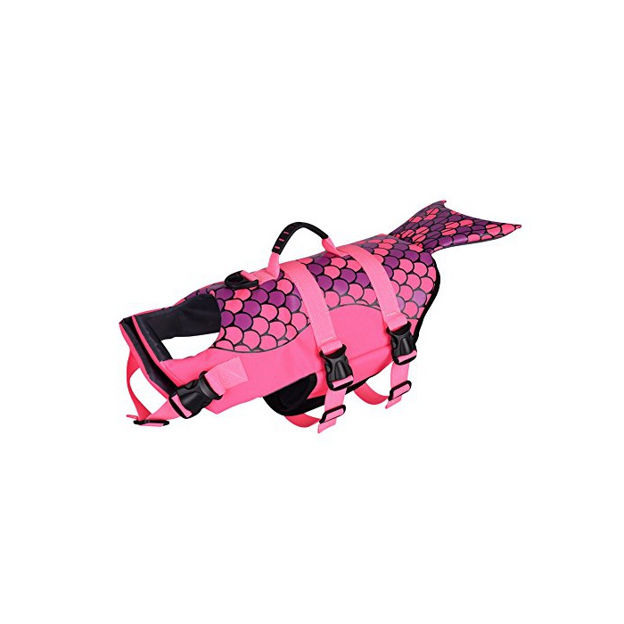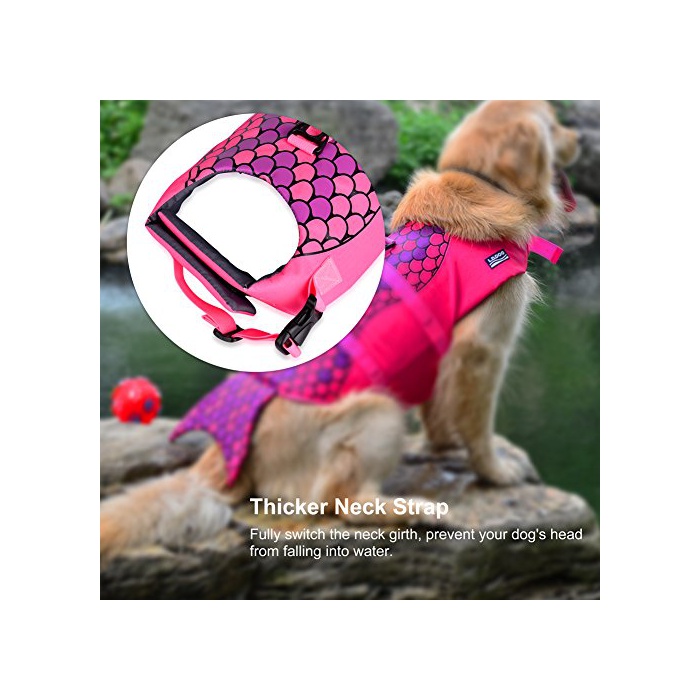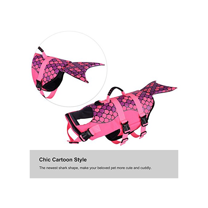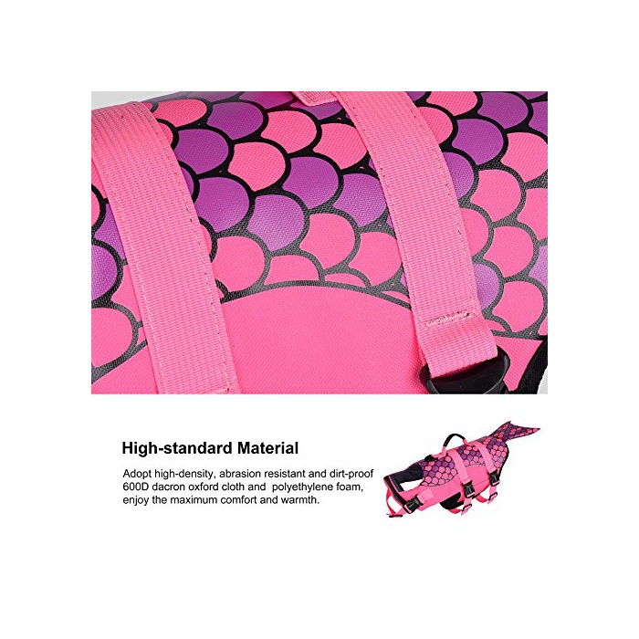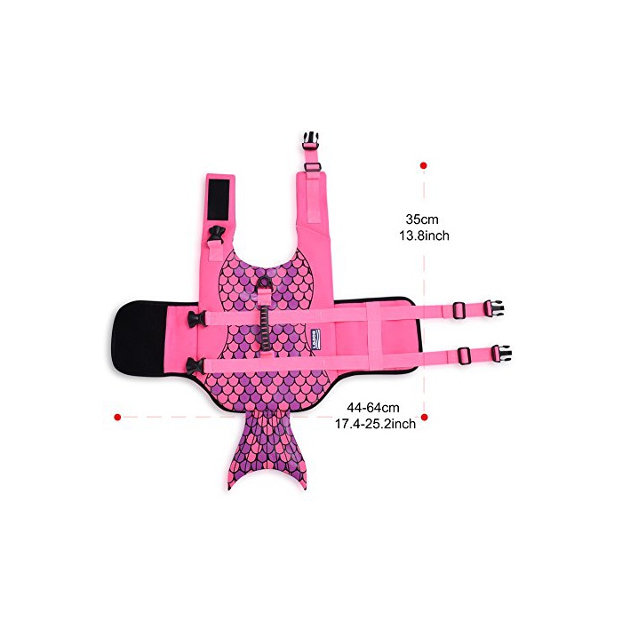 ★귀여운 인어의 디자인 특징:이 라이프 재킷을 장착하고, 마치 인어가 수중에서 헤엄치고 있는 것 같습니다,재미있습니다.훌륭한 레드색에 두드러지고, 애견이 주인 씨부터 떨어졌 먼 곳에 헤엄치고 가도애완동물의 거처가 분명히 보입니다.