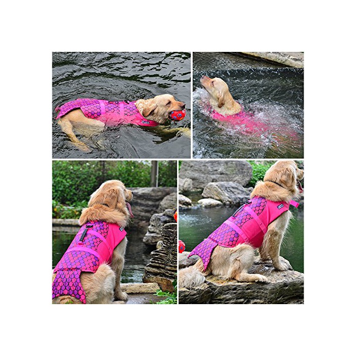 Petacc 견용구명 조끼 애완동물 라이프 재킷 애완동물 재킷 애완동물용 플로팅 베스트 소프트 수영 연습 해수 놀이에 중형견 대형견 (핑크M)