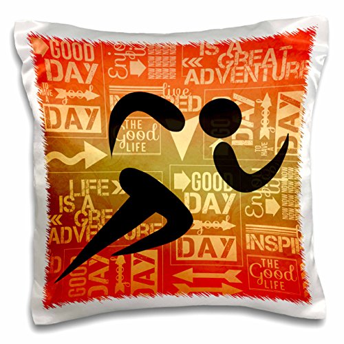 3dRose pc_173208_1 Marathon Runner Silhouette with Sunset Hues and Adventure Word Art-Pillow Case, 16 by 16"