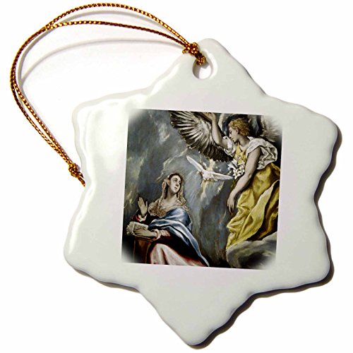 3dRose orn_82990_1 Grecos Painting The Annunciation Prisma Snowflake Decorative Hanging Ornament, Porcelain, 3-Inch