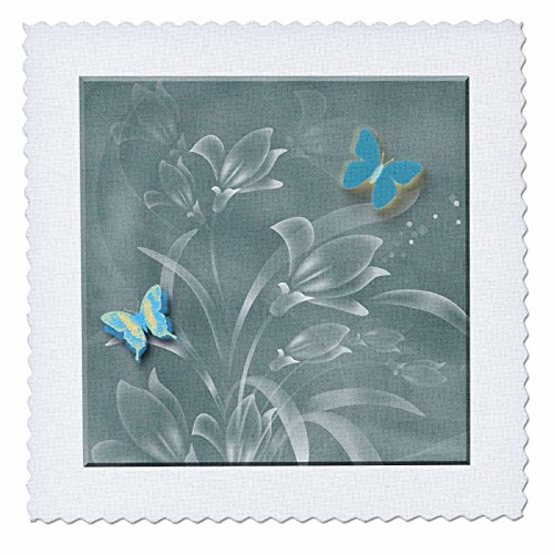 3dRose qs_128913_7 Pretty Damask Background in Sage Greens and Butterflies and Flowers-Quilt Square, 18 by 18-Inch