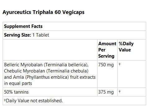 -. Binding : Health and Beauty -. Brand : Avesta -. EAN : 0704849000633 -. Feature : Savesta / Savesta Triphala Detoxification and Digestion 60 Veg Tabs / Gluten Free, Non-GMO -. IsAdultProduct : 0 -. Label : Savesta -. LegalDisclaimer : * These statements have not been evaluated by the Food and Drug Administration. This product is not intended to diagnose, treat, cure or prevent any disease. ** Always refer to the manufacturer's label on the product for description, recommended dose and precautions. -. Manufacturer : Savesta -. MPN : 517063 -. PackageQuantity : 1 -. PartNumber : 517063 -. ProductGroup : Health and Beauty -. ProductTypeName : HEALTH_PERSONAL_CARE -. Publisher : Savesta -. Size : 60 vegicaps -. Studio : Savesta -. Title : Savesta Triphala Detoxification and Digestion 60 Veg Tabs -. UPC : 704849000633