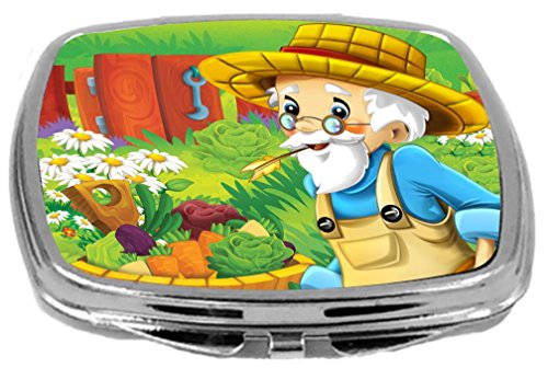 Rikki Knight Cute Old Farmer Cartoon with Farm Vegetables Design Compact Mirror, 17 Ounce