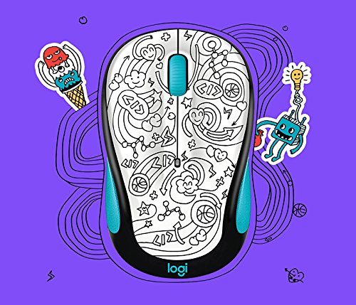 -. Feature : A Logitech Doodle Collection M325c Wireless Mouse takes you far away from the everyday / All the way to your happy place / Choose from doodle designs that reflect your creativity / Lasts up to 18 months on a single battery / Responds up to 33 ft