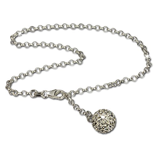 SilberDream anklet glitter ball with white Zirconia, 925 Sterling Silver 9.8 inch SDF010W