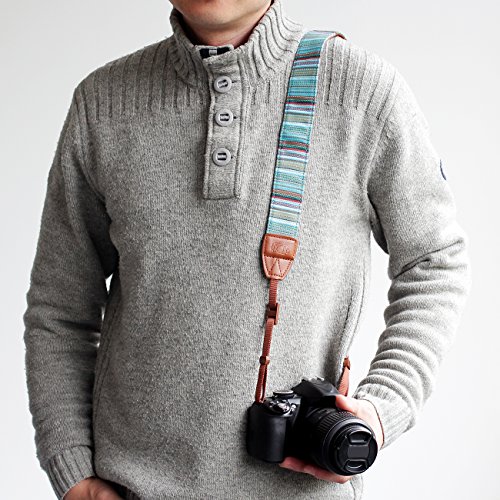 TARION Camera Shoulder Neck Strap Vintage Belt for All DSLR Camera Nikon Canon Sony Pentax Multi-color Pinstripe Boho Style
