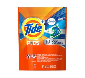 -. Binding : Health and Beauty -. Brand : Tide -. EAN : 0037000955689 -. Feature : 4-in-1: Detergent + Stain Removal + Brightener + Odor Defense / Tide PODS Plus Febreze Odor Defense Active Fresh are specifically designed to help fight tough set-in odors / Don't Just Mask Odors. Eliminate Them with the Tide + Downy Odor Defense Collection / Designed For Regular and HE Washing Machines (front- and top-loaders) / Tide PODS laundry pacs dissolve in hot and cold water. Tide PODS formulated with HE Turbo technology that contains quick collapsing suds and targets tough stains. Part of the Tide+Downy Odor Defense Collection that helps eliminate odors at the source, leaving your fabrics fresh and clean. Keep out of reach of children -. IsAdultProduct : 0 -. Label : Proctor and Gamble -. Manufacturer : Proctor and Gamble -. PackageQuantity : 1 -. ProductGroup : Health and Beauty -. ProductTypeName : HEALTH_PERSONAL_CARE -. Publisher : Proctor and Gamble -. Studio : Proctor and Gamble -. Title : Tide Pods Plus Febreze Odor Defense Laundry Detergent Pacs, Active Fresh, 23 oz, 23 Count -. UPC : 037000955689