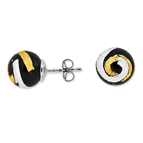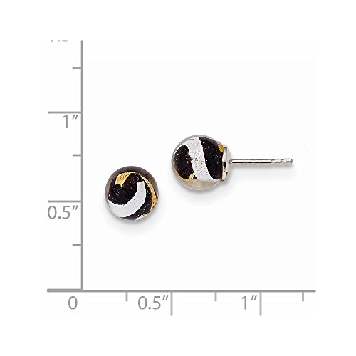 Sterling Silver Black, gold-tone & Silver Murano Glass Earrings (8mm x 8mm)