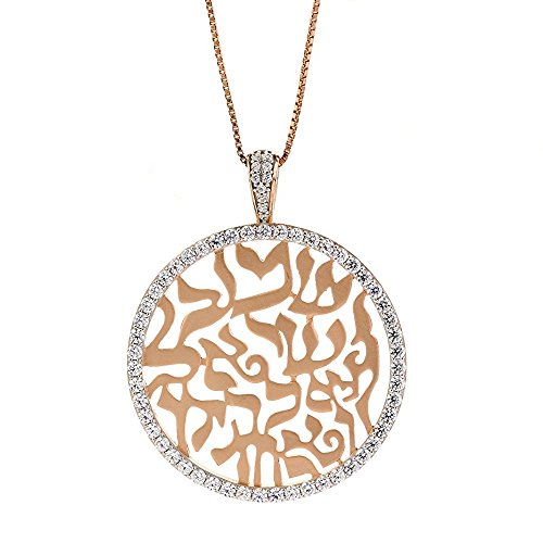 This Beautiful Shema Israel Blessing pendant is made of Sterling Silver with your choice of Platinum Plated, Yellow or Rose Gold Plated. It is 28mm Diameter by 36mm including the Bail and is 2.1mm Thick. It is Like a Quarter size. For more information, please view the CAD image on this listing. It has Pure Brilliance Swarovski Zirconias set on the Bezel and the Bail. It includes a 1mm 22" Adjustable Box Chain. Any Questions, please call us at -800-709-9445 Monday to Saturdays, 10am to 6pm central time