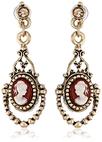 Antique gold-tone earrings featuring crystals and vintage-style drops with cameo engravings Made in the United States Brand : 1928 Jewelry Item model num : 26666 MPN(PartNumber) : 26666 EAN : 0011996266660 Package Dimensions(LxWxH) : 11x10x1cm ; 91 g