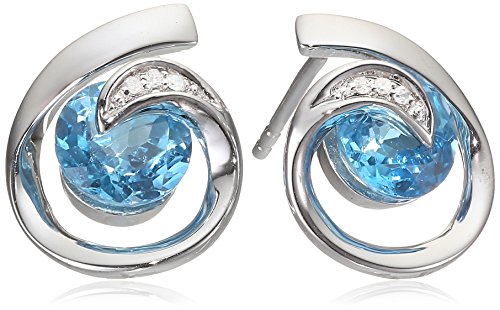 Round gemstone in sterling silver swirl setting with round diamond accents at tip