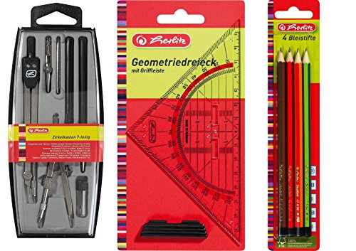 Zirkel, Wendeteilzirkel, + Geodreieck 16cm mit Griff + 4 Bleistifte (2B B HB H)