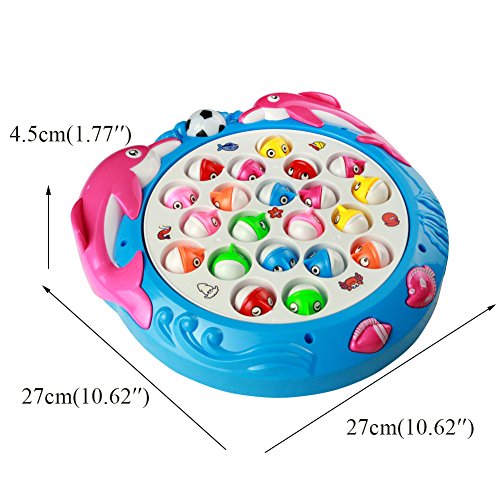 Studio : XC TOYS Publisher : XC TOYS Binding : Toy Product Description Package Included: ★1×fishing board ★4×fishing rods ★21×colorful fishes. Let's go fishing game ?Turn it on with a small switch (need 3 AA batteries:not included)and the little fishes open and close their mouths and the fishing board slowly spins with music, the child can use the fishing pole to catch a fish,which helps build motor skills and hand-eye coordination. ? Perfect fun game to play with kids on party or family time, and this product has worked great to practice kids' balance ability, kids also get a bit of cognitive skills from it. Warning: suitable for children 3 , please play it under adult's supervision. If you have any questions,PLEASE FEEL FREE TO CONTACT US ,thanks! 0