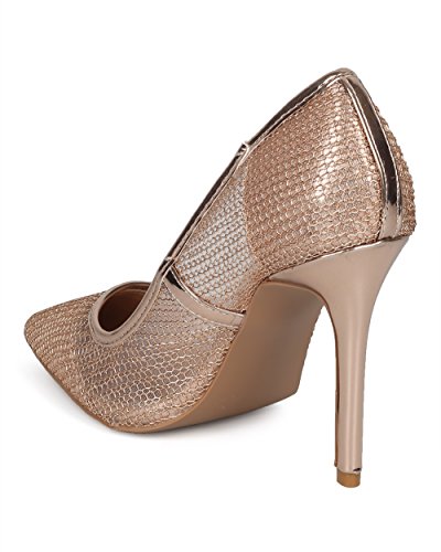Product Description These pumps are made with a mesh upper, pointy toe and scooped vamp. Also made with a single sole, stiletto heel and easy to slip on design. 0
