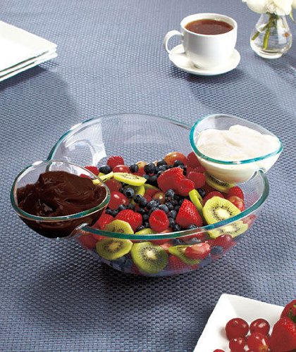 Versatile Serving Piece With Multi Uses, You can use this as a standard Chip bowl, and put salsa in the dip bowls, or you can make a big salad, and put a different dressing in each dip bowl, or strawberries and chocolate/cream as a dessert