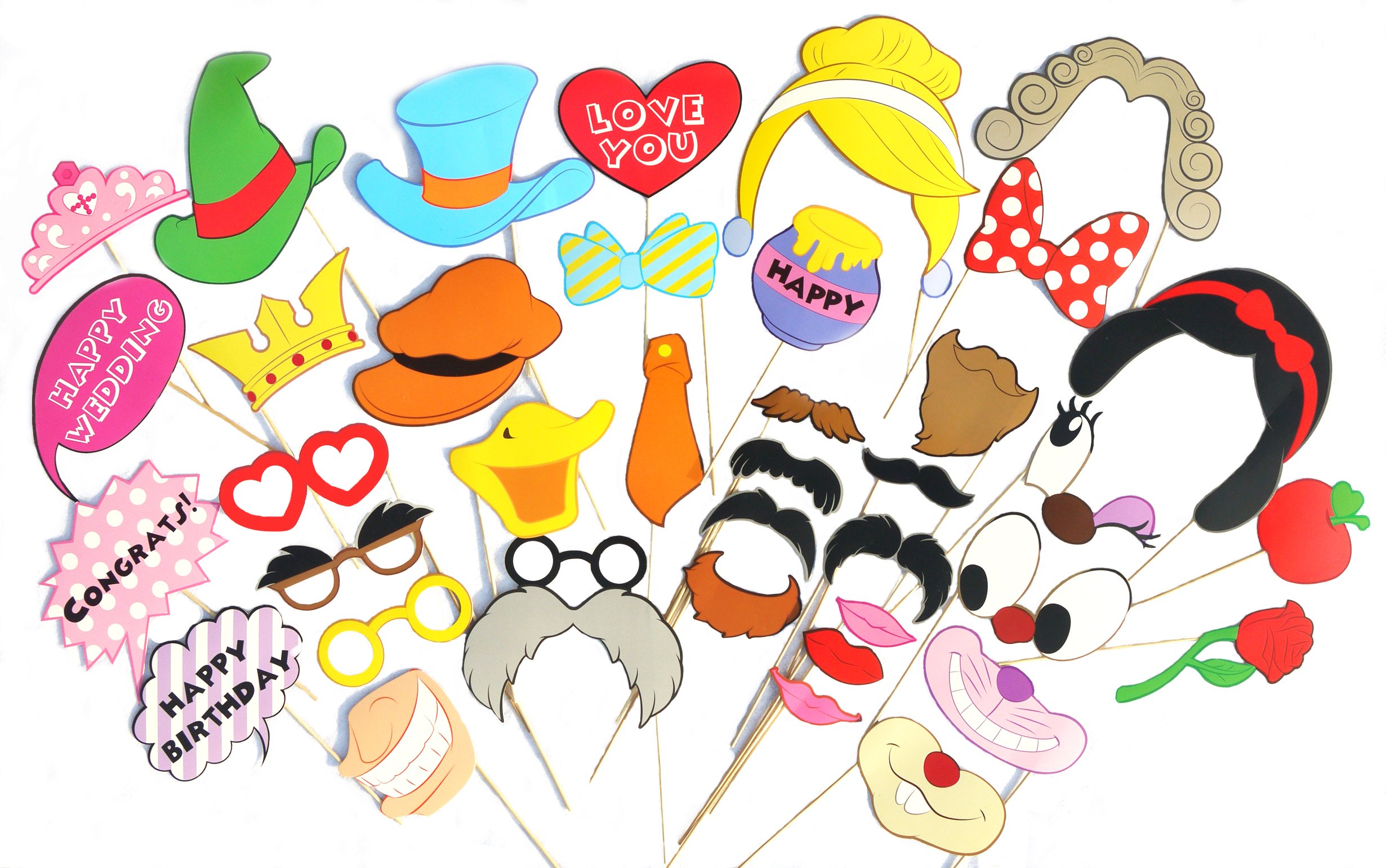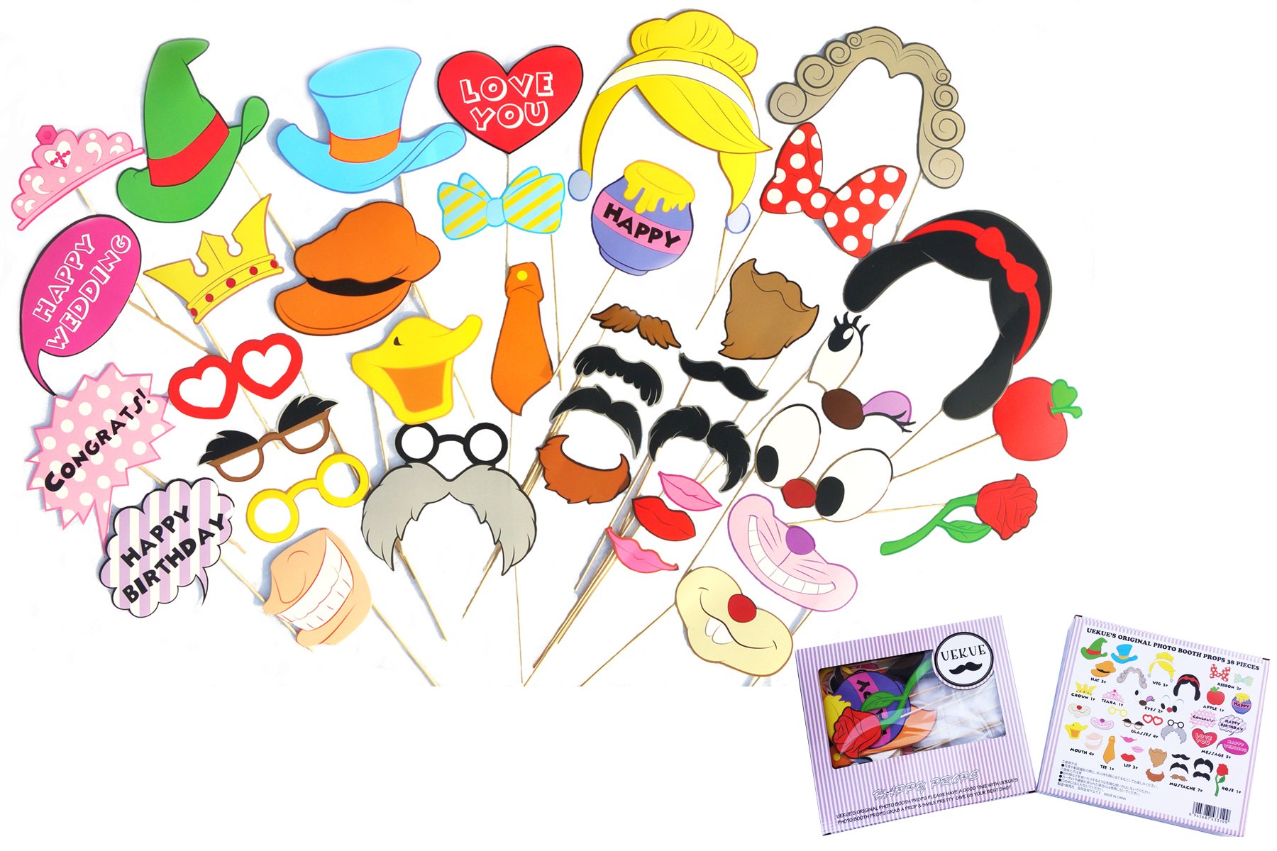 Upper Que original photo Prop scan 38-piece set (HAPPY PROPS) wedding after-party birthday party photo props ※ stick installation settled (wood stick)