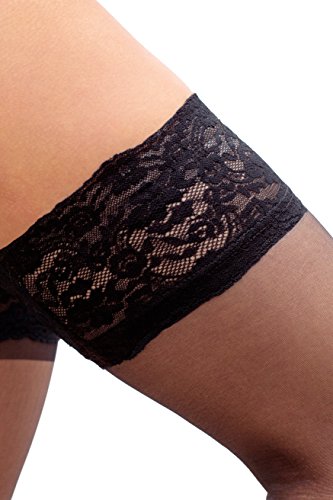 -. Title : sofsy Lace Thigh High Sheer Hold Up Nylon Pantyhose Stockings Deep Wide Silicone Top 15 Den 20 Den [Made in Italy]