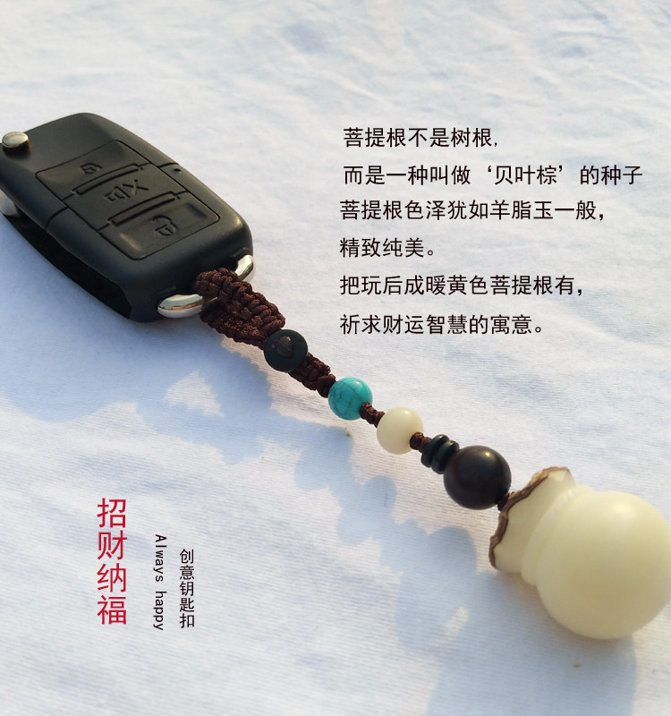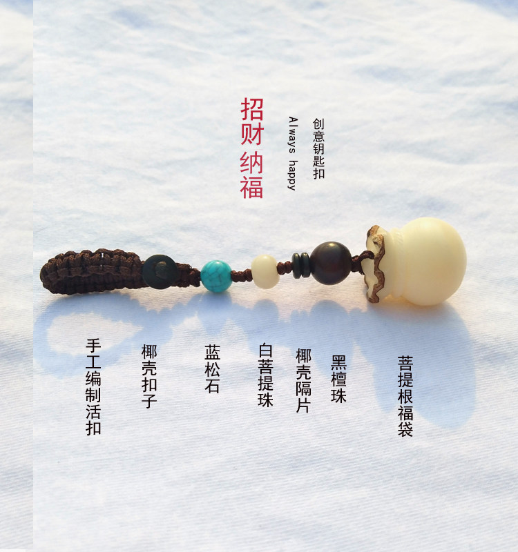 天然菩提子雕刻招财福袋 汽车钥匙挂件挂饰 男女士个性包挂