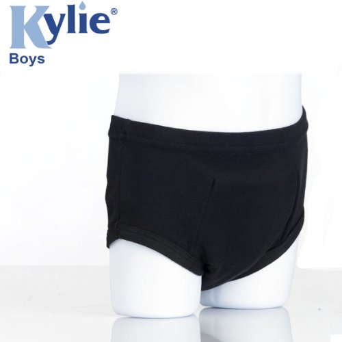 Studio : Kylie Publisher : Kylie Product Description The integral liner of the Kylie Boys brief is complete with leakguard protection that prevents leakage and assures the user of a secure and confident fit. The Kylie Boys brief is specially designed to look and feel like normal underwear. The brief offers maximum protection, absorbency and reliability in the most discreet way. Ideal for overnight use, reduces the risk of bed wetting and assists with potty training. The Kylie range of washable absorbent underwear is recommended by continence care advisers and is the only washable continence range that has our unique leakguard feature. Developed from research carried out at one of London's leading hospitals, the leakguard is positioned around the leg opening of the brief to ensure that there is no leakage from the absorbent gusset. The leakguard gusset protection system promotes wearer confidence and has enabled the Kylie range to be the leading brand in its field for over 25 years. These time tested features are incorporated in all our hand finished underwear and bed protection products. Children's Underwear Size Chart - Waist Size | Age | Size | cm | inches | | 2-4yrs | Small | 46-56 | 18-22" | | 5-7yrs | Medium | 51-61 | 20-24" | | 8-9yrs | Large | 56-66 | 22-28" | | 10-11yrs | X-Large | 61-71 | 24-28" |